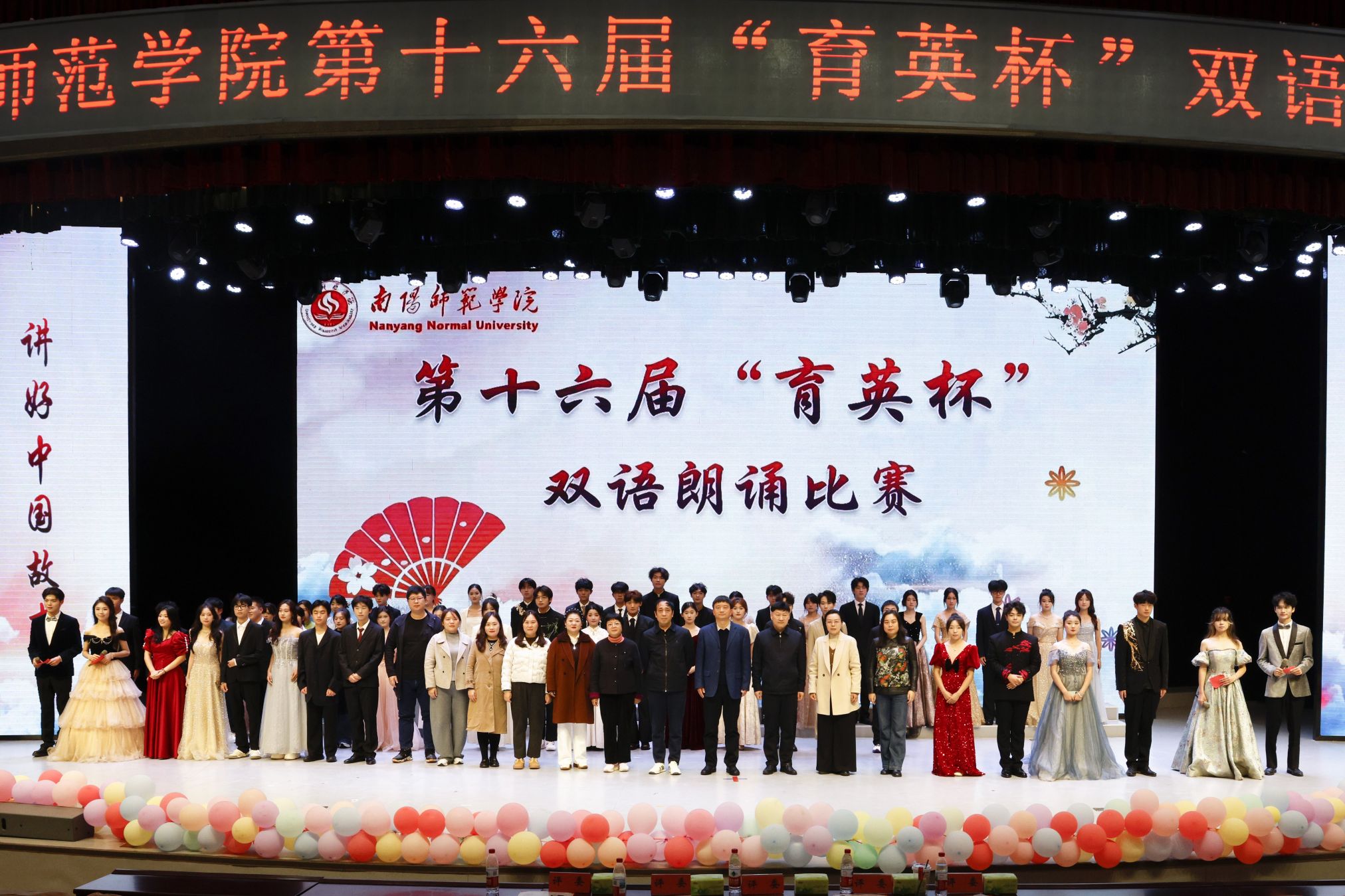 11月7日下午,由教务处(语委办)、学生处、校团委主办,文学院承办的第十六届“育英杯”双语朗诵大赛在音乐厅举行。副校长刘金江教授出席、教务处、学生处、校团委负责同志参加。本次大赛共有十七支队伍参赛角逐,三支队伍参与表演。学子们用饱满的热情、生动的语言,倾情讲述中国故事,让青春和声与时代共鸣。教育科学学院的《百年交响》大气磅礴,为我们展开了一副波澜壮阔的历史画卷;化学与制药工程学院的《青春诵响中国...
