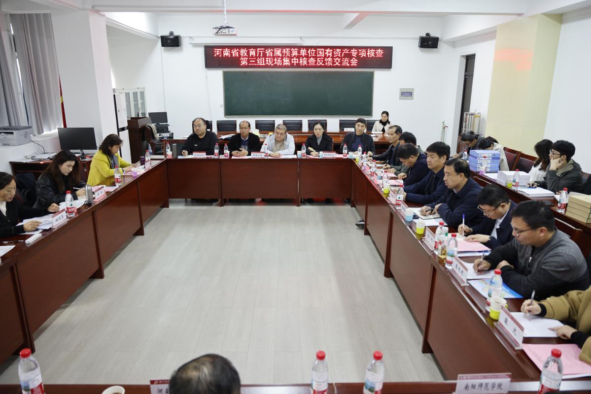 1会议现场2核查现场本网讯(薛振彦/图阮子涵/文)11月4日下午,河南省教育厅省属预算单位国有资产专项核查第三组现场集中核查反馈交流会在我校召开。省教育厅财务处办公室主任胡阳、专项核查第三工作组组长姚晓惠,我校副校长谢海泉出席会议。来自信阳师范大学、河南城建学院、黄淮学院、河南工业职业技术学院、河南省经济管理学校、河南省驻马店财经学校等被核查单位的资产管理部门负责人参加会议。谢海泉代表学校对参会人员表示热烈欢迎。他指出,国有资产是学校办学治校的核心战略资源,此次专项核查既是全面...