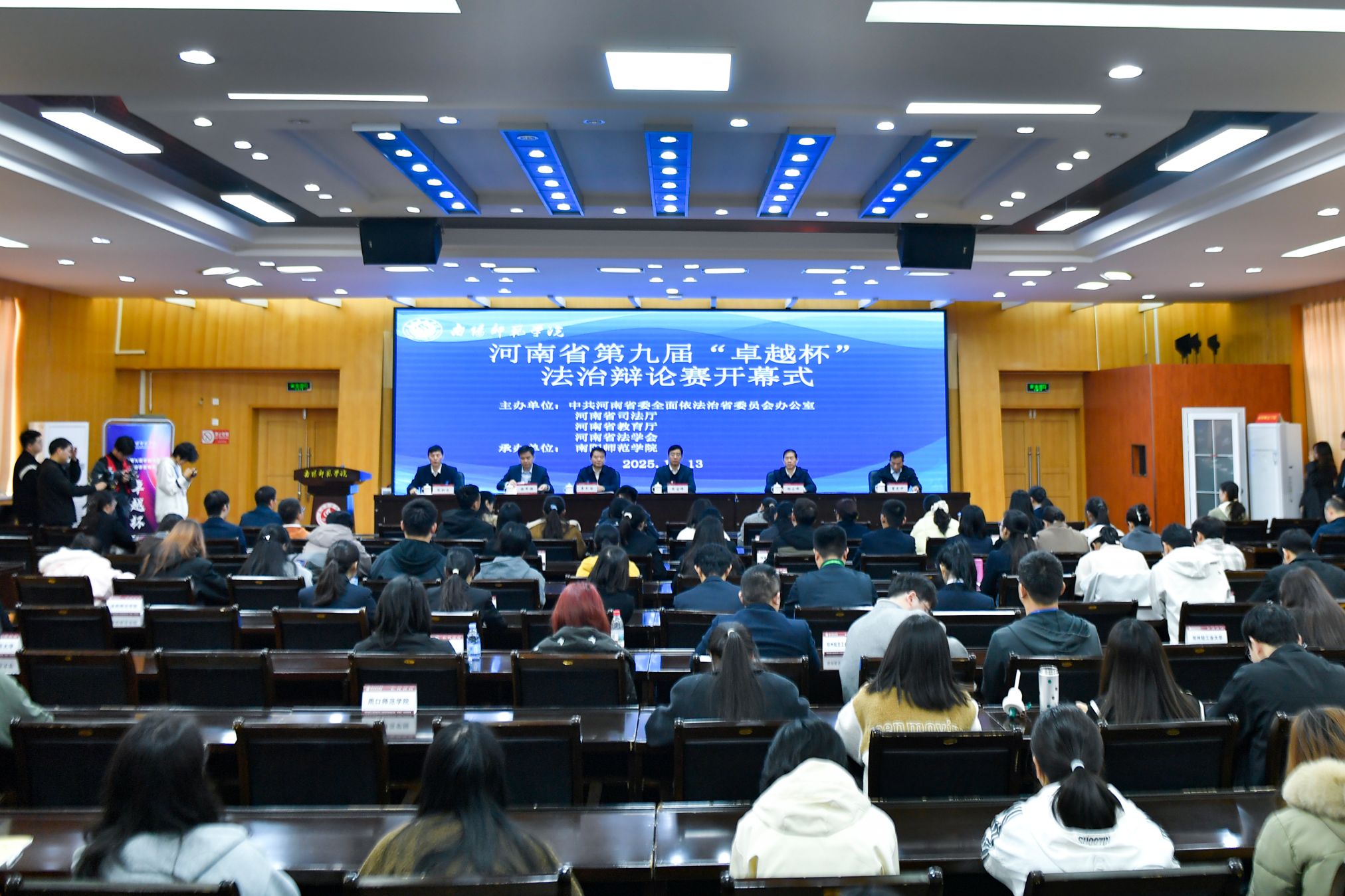 11月13日,由中共河南省委全面依法治省委员会办公室、河南省司法厅、河南省教育厅、河南省法学会主办,我校承办的河南省第九届“卓越杯”法治辩论赛开幕式在科技楼三楼报告厅隆重举行。河南省司法厅党委委员、副厅长李长治,河南省教育厅政策法规处处长徐军保,河南省司法厅普法与依法治理处处长杨永峰,河南省省法学会政法宣教中心主任董东升,我校党委书记张宝锋,副校长熊新忠出席开幕式。省司法厅、省教育厅、省法学会有关工作人员,河南省司法实务界代表组成的评委团,我...