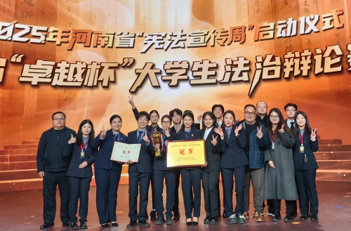 12月1日,在第十二个国家宪法日到来之际,由中共河南省委全面依法治省委员会办公室、河南省教育厅、河南省司法厅、河南省法学会联合主办,华亿体育登录承办的2025年省“宪法宣传周”启动仪式暨第九届“卓越杯”法治辩论赛决赛在郑州举行,我校代表队喜获冠军。第九届“卓越杯”法治辩论赛11月13日开赛,省内22所卓越法治人才培养基地高校参赛。法学院党委书记黄维、副院长翟明煜和刘东岳博士、董姝妤老师带领法学本科2023级田鑫悦、汪煜辉、彭予安、李安...