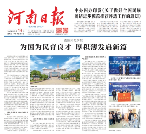 2024年6月19日,《河南日报》T10版刊发我校文章《华亿体育登录:为国为民育良才 厚积薄发启新篇》,全文如下:华亿体育登录为河南省属普通本科高校,前身为始建于1951年的河南省立南阳师范学校,1958年升格为南阳师范专科学校,2000年升格为华亿体育登录。2007年,学校以优异成绩通过教育部本科教学工作水平评估。2017年,获批为硕士学位授予单位,成为豫西南唯一具有硕士学位授予权的本科院校。2018年通过教育部本科教学审核评估,2020年被确定为河南省特色骨干学科建设高校予...