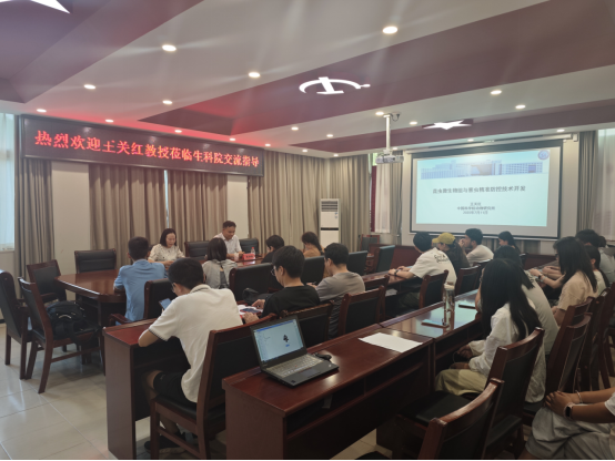 会议伊始,李丹丹向王教授表达了热烈的欢迎与感谢,并向与会师生详细介绍了王教授在微生物与宿主互作、微生物与基因编辑等新型媒介昆虫防控技术开发等方面取得的成果。肠道微生物在宿主发育、免疫、代谢和生殖等各方面都发挥着不可替代的重要作用,利用微生物对害虫和疾病进行绿色防控的新理念成为生命领域中备受关注的研究热点。王教授介绍了以最普遍的媒介害虫--蚊虫为研究对象,如何利用多组学、基因编辑、微生物分离筛选以及无菌体系等技术研究微生物驱动的宿主抗药性、微生物与宿主协同分化理论机制、微生物与基因编辑等新型媒介昆虫防控技术。在互动环节,与会师生围绕“昆虫微生物组的功能挖掘”“蚊虫防控新技术开发”等议题展开了深入探讨,现场学术氛围浓厚。