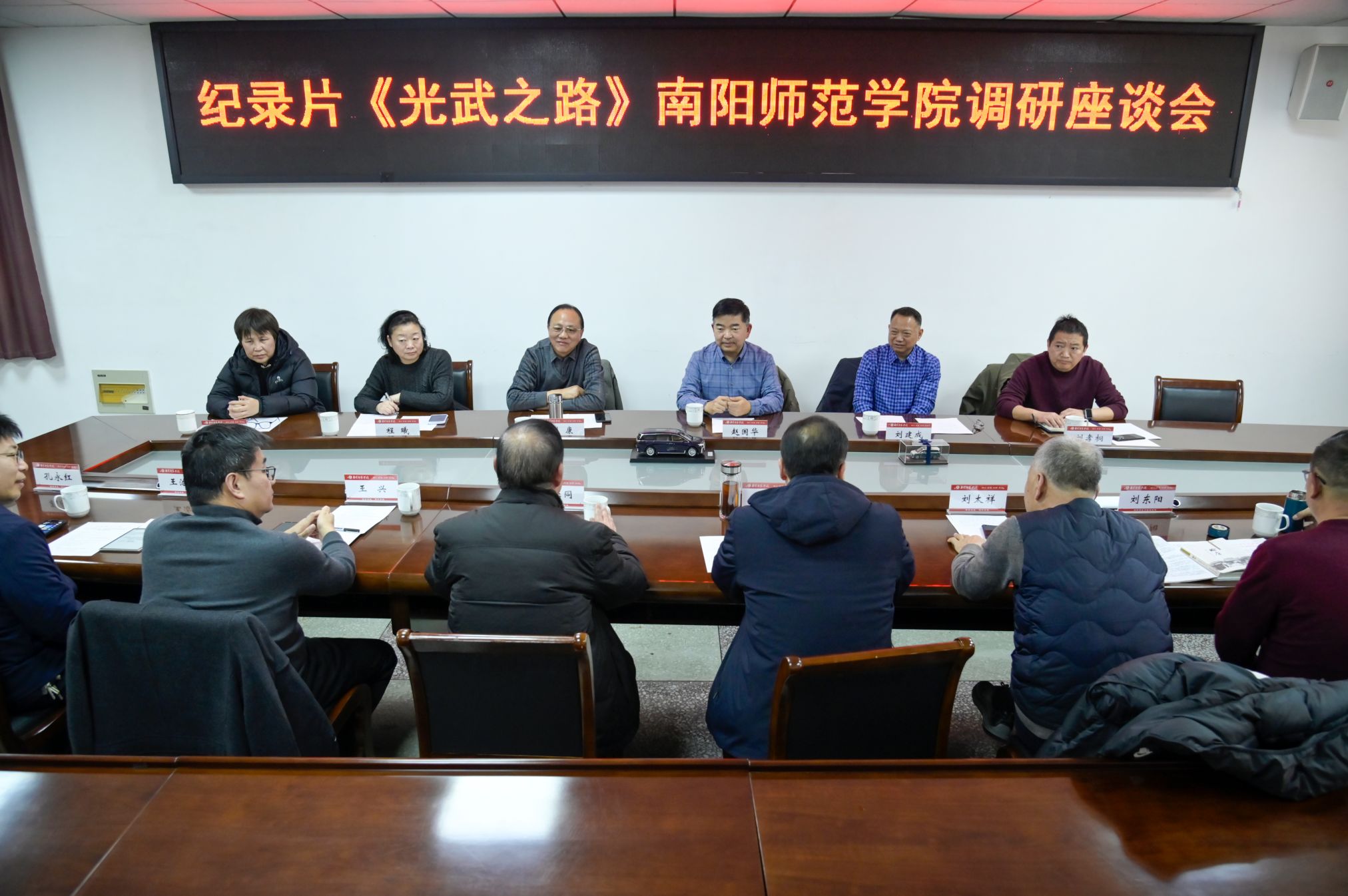本网讯(张恒杰/文 王梁仪/图)2025年12月15日,中国秦汉史研究会副会长、湖北省东汉文化研究会会长、华中师范大学赵国华教授偕湖北省东汉文化研究会、湖北省电视台相关专家来校调研。我校社科处、图书馆、期刊部、社旗县博物馆负责同志以及我校汉文化学科群相关专家参加座谈。双方围绕纪录片《光武之路》拍摄主题进行了深入交流。座谈会由校党委组织部部长、汉画像石数字修复与呈现实验室执行主任王春阳主持。