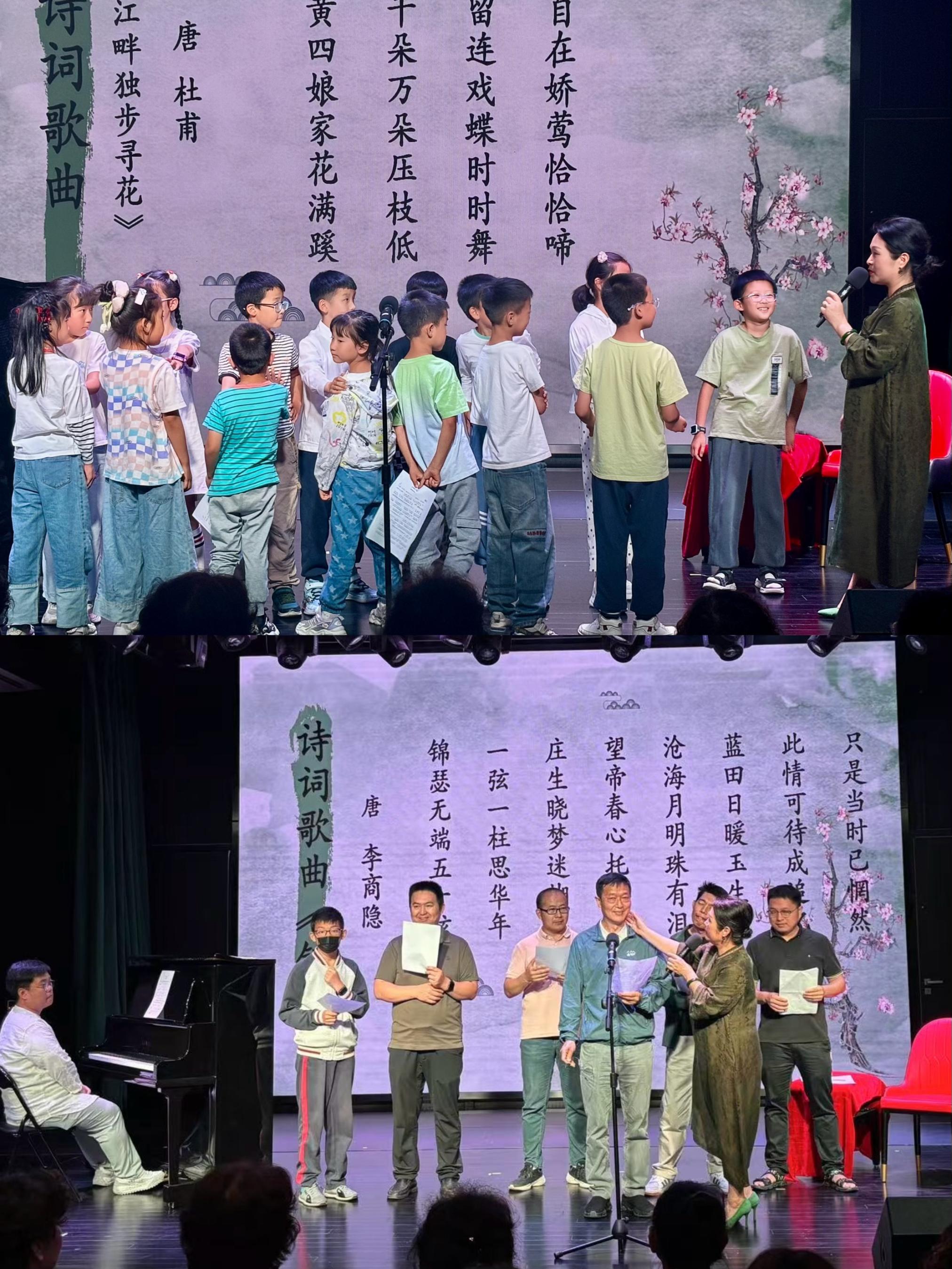 本网讯(通讯员 魏艳斐)5月18日,由我校公共艺术教育中心主办、苏州聚橙尹山湖剧院承办的“和诗以歌”公益声乐课堂在苏州尹山湖大剧院橙空间剧场开讲。公共艺术教育中心魏艳斐老师以《锦瑟》《江畔独步寻花》两首古诗词歌曲为核心,通过上午与下午两场活动,为三百余位声乐爱好者呈现了一场兼具专业深度与艺术感染力的传统文化体验课堂。