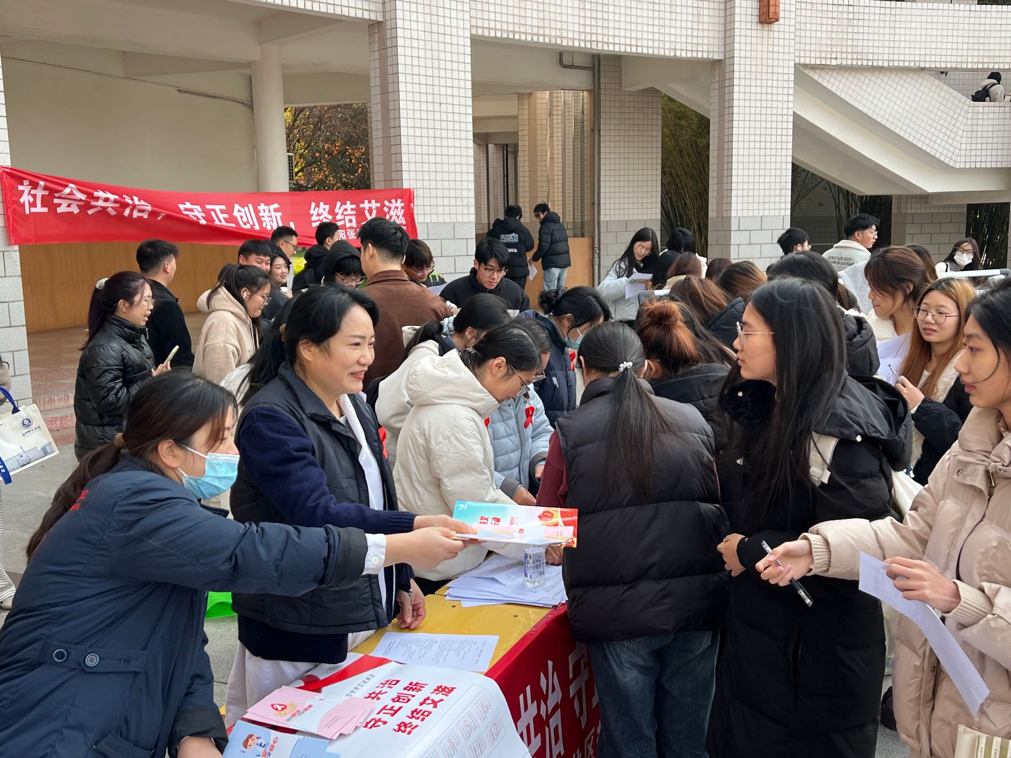 活动现场精心设计的防艾主题展板以图文并茂、生动直观的方式,详细介绍了什么是艾滋病以及传播途径、预防措施等关键健康知识,吸引众多师生驻足细看。医务人员发放宣传手册,耐心细致地为每一位有疑问的师生答疑解惑,用通俗易懂的语言讲解专业防艾知识,确保大家都能理解并掌握,同时采用知识竞答、现场答疑的方式让师生在轻松愉悦的氛围中收获了宝贵的健康知识。此外,活动现场还设置了免费检测咨询台,疾控专家为有需求的师生提供专业指导,强调“早发现、早诊断、早治疗”对于疾病防控的关键意义,鼓励大家科学面对、积极预防。(编审 刘潇潇)
