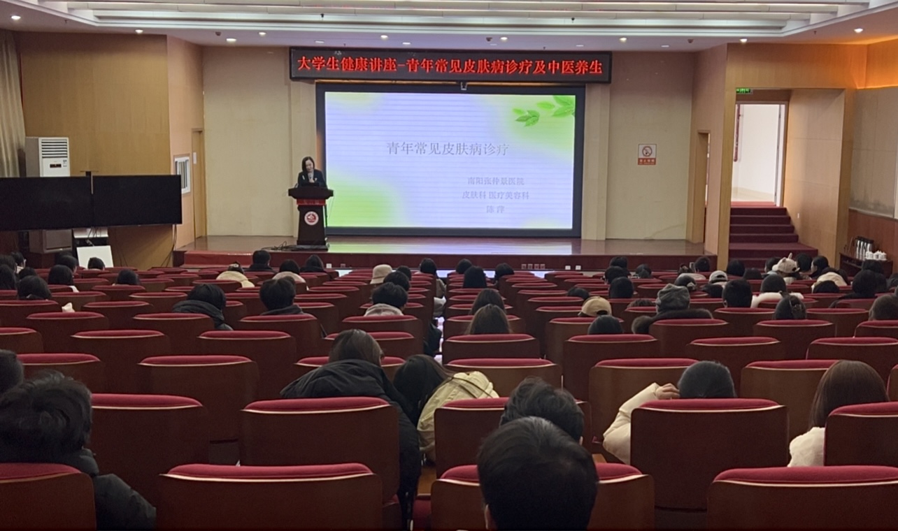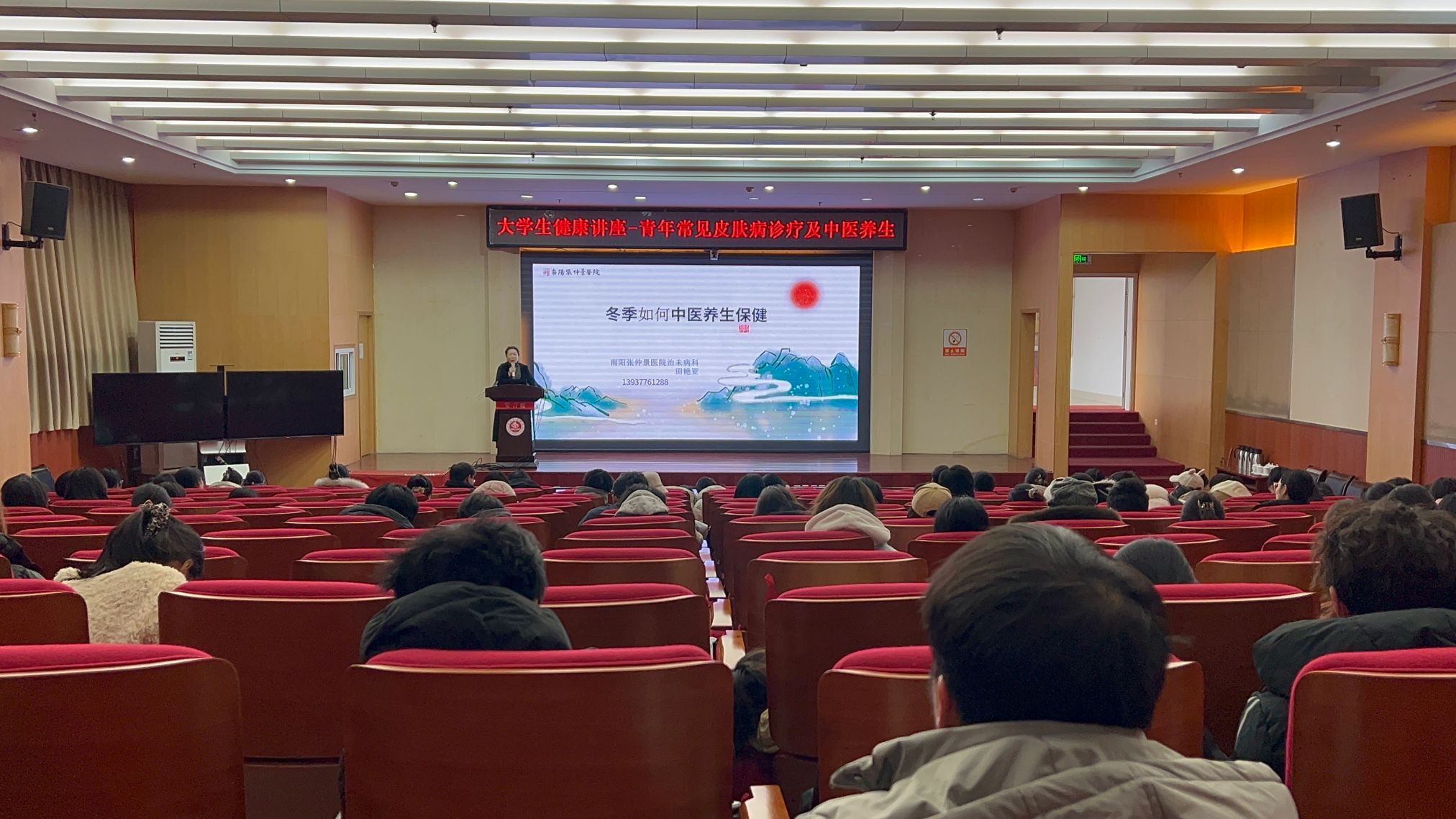 本网讯(通讯员 王莞喆 图/文)为提升大学生健康素养,增强自我健康管理能力,12月24日下午,校医院邀请南阳市张仲景医院皮肤科与中医科专家走进校园,举办以“青年常见皮肤病诊疗及中医保健”为主题的大学生健康知识讲座。