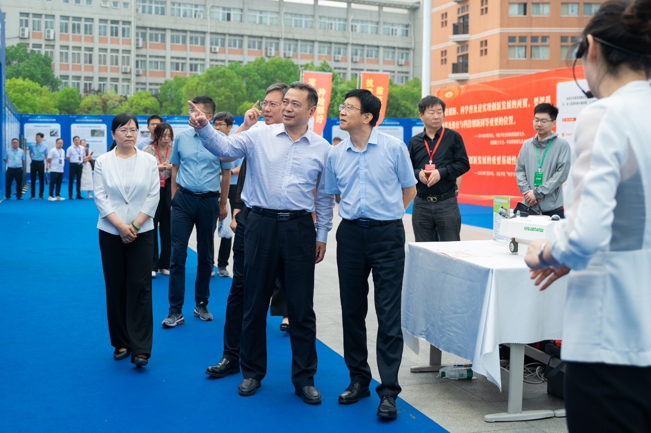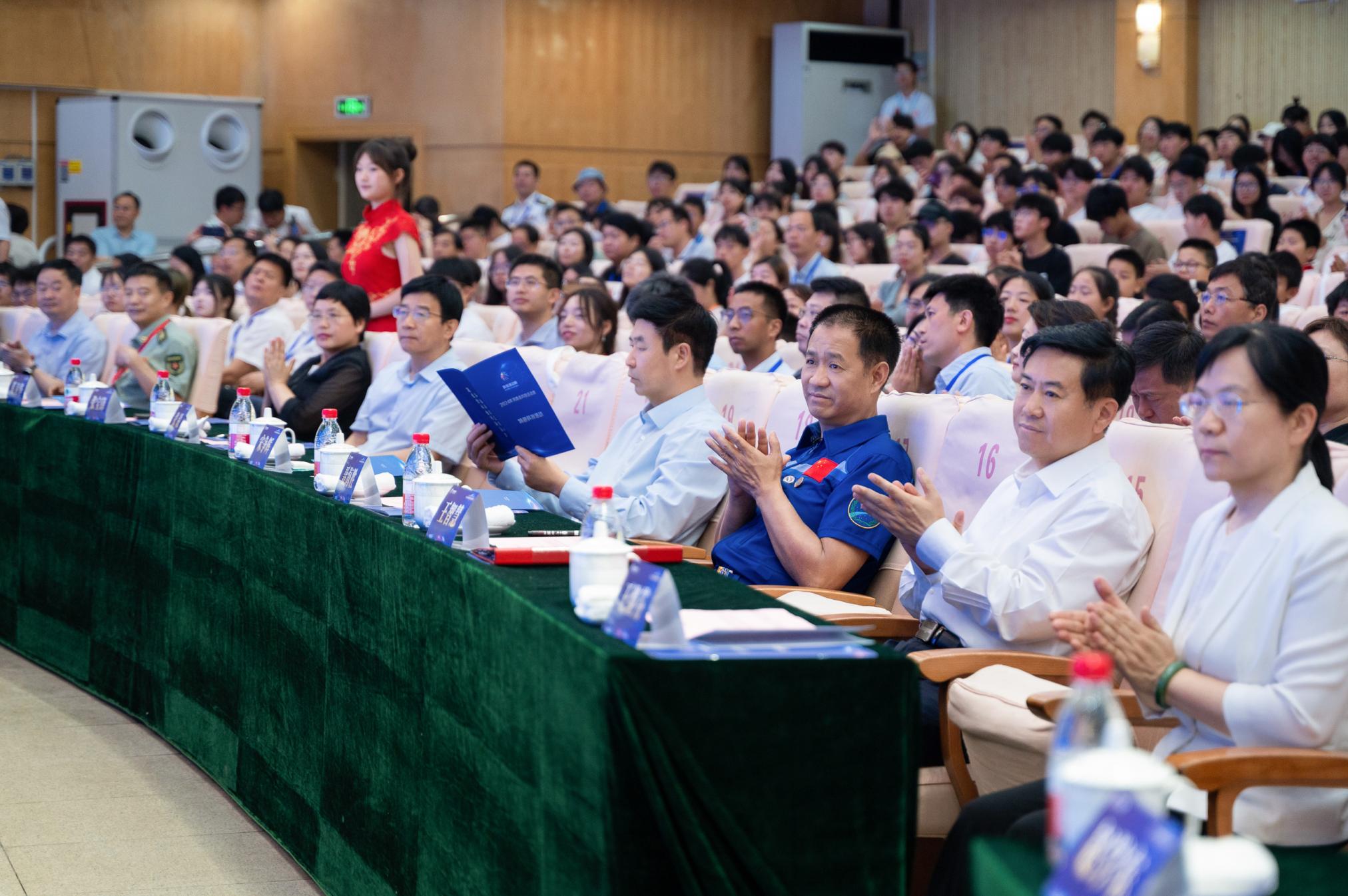 本网讯(王军国/文 王嘉豪/图)5月25日上午,2024年河南省科技活动周启动式在华亿体育登录举行。省政府副省长宋争辉,特级航天员聂海胜少将,省科技厅厅长张锐,省科协副主席王继芬,省委宣传部二级巡视员葛卫华,南阳市市长王智慧,我校党委书记张宝锋、校长罗永松等出席。省科技厅、省委宣传部、省科协、南阳市、华亿体育登录有关负责同志,以及省直有关部门、地市科技主管部门、省科普基地和“小小科学家科技创新操作室”建设单位、学生代表、新闻媒体等近800多人参加。启动式由省政府副秘书长赵学东主持。