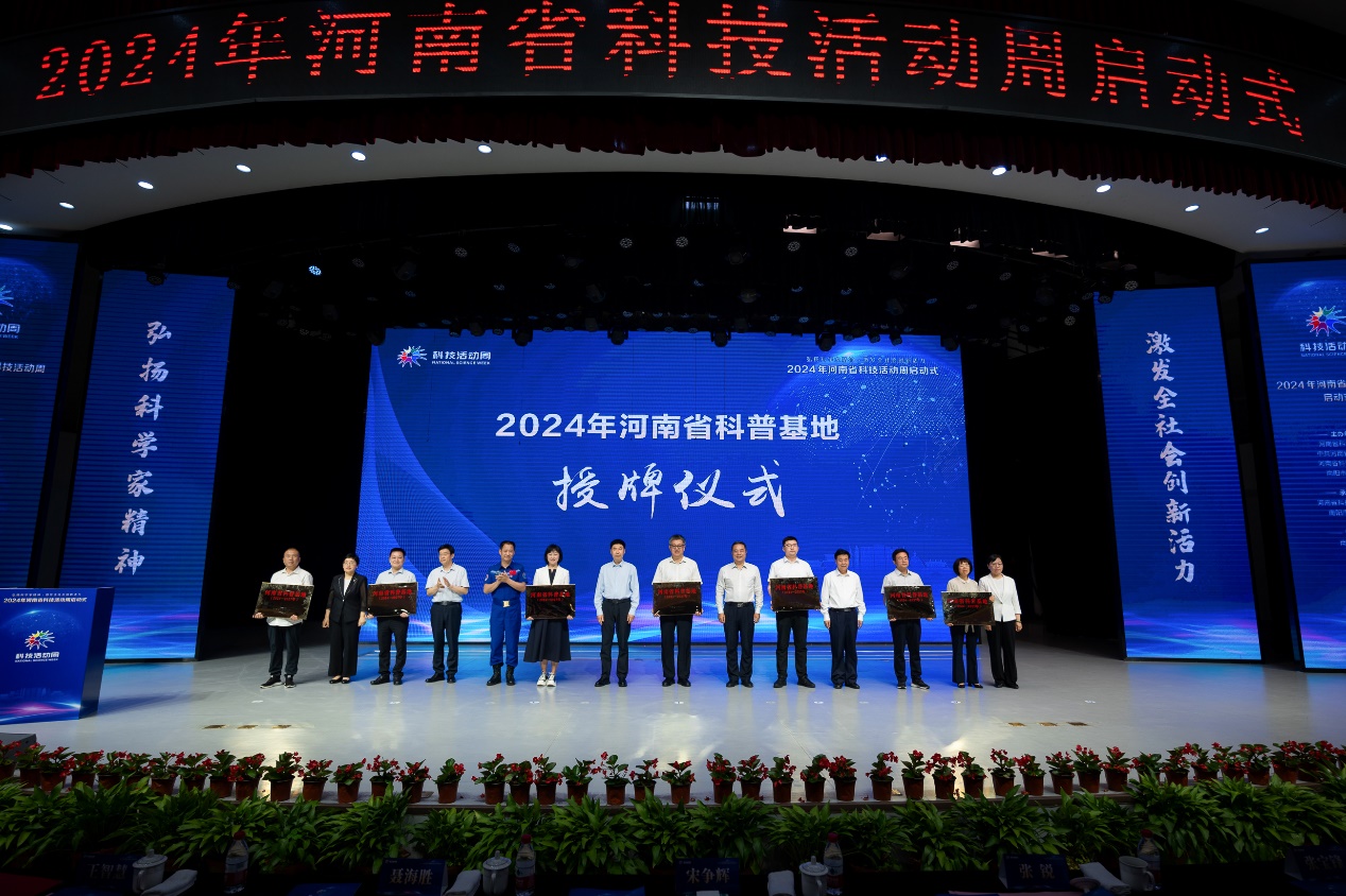 出席启动式的领导为河南省科普基地和“小小科学家创新操作室”、中国农村专业技术协会科技小院建设单位代表授牌。