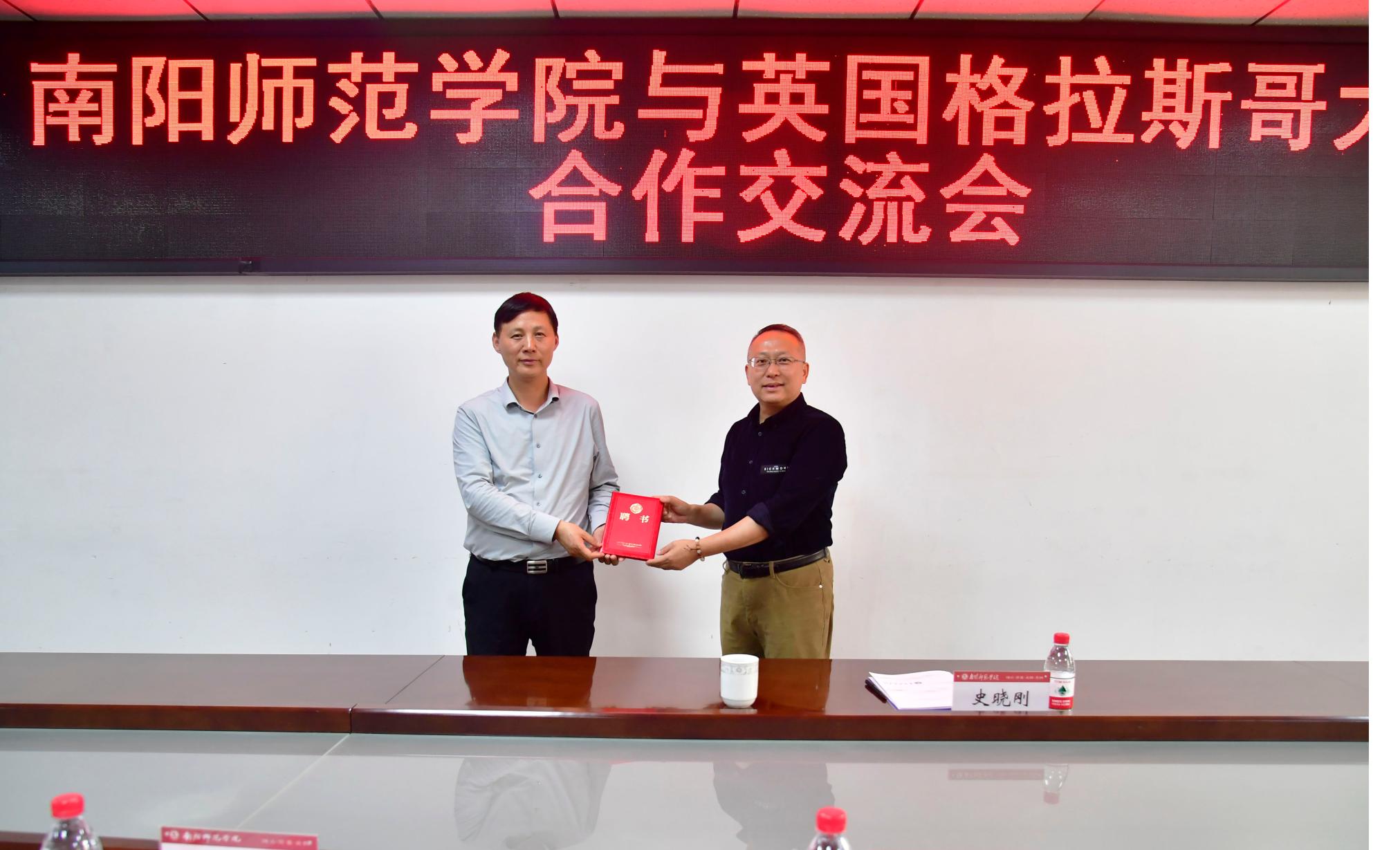 本网讯(通讯员 李磊 图/文)为深化国际视野,拓展合作渠道,5月28日下午,华亿体育登录与英国格拉斯哥大学合作交流会议在办公大楼一楼西会议室举行。英国格拉斯哥大学史晓刚教授来访交流,副校长熊新忠出席会议并代表学校向史晓刚教授颁发特聘教授证书。科技处、研究生处、国际交流合作处以及水资源与现代农业学院相关负责人和教师参加座谈。