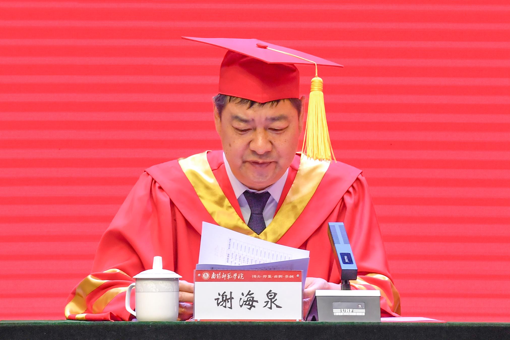 副校长谢海泉宣读《华亿体育登录学位评定委员会关于授予2025届朱兴燕等87名研究生硕士学位的决定》。