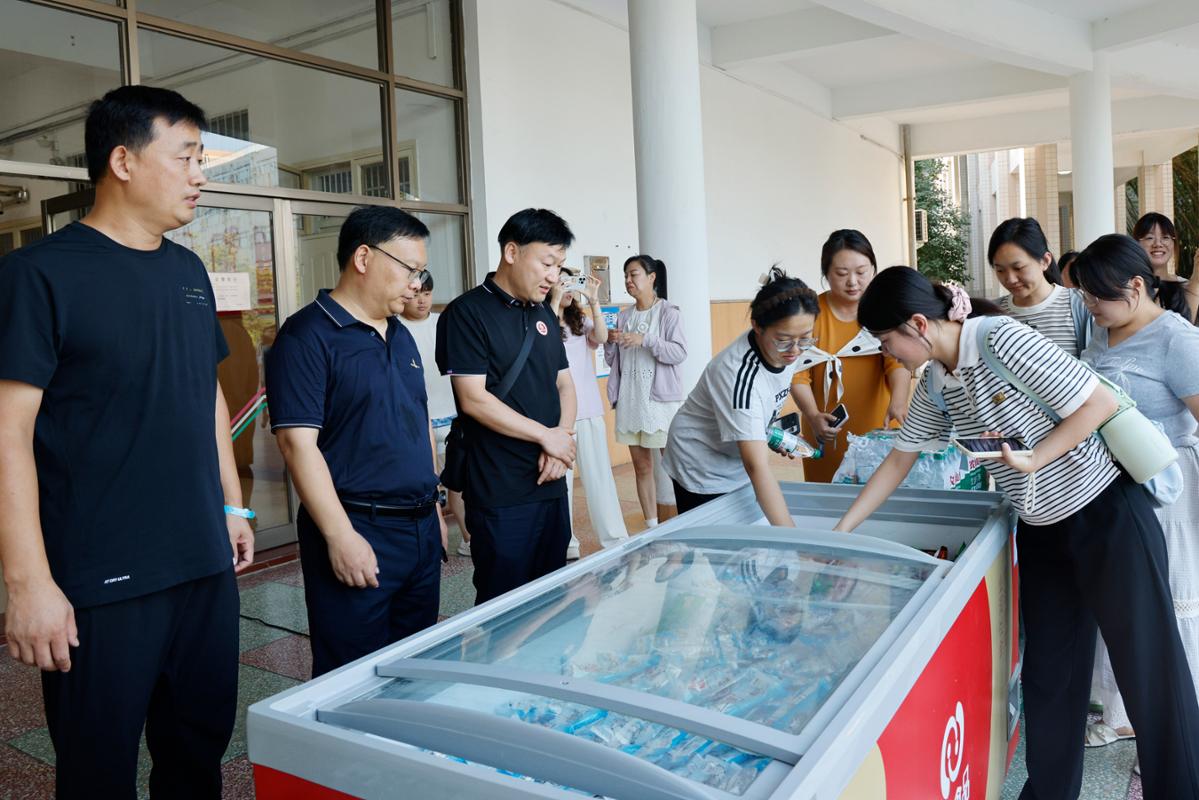学生处、劳动服务公司等部门积极筹划,事先联系厂家、选购合格瓶装水、冰棍、雪糕、冰激凌等降温物品,在逸夫教学楼前布置冰柜,向过往的学生、职工、教师免费发放。众多师生、职工前往领取,并对该活动给予充分肯定。