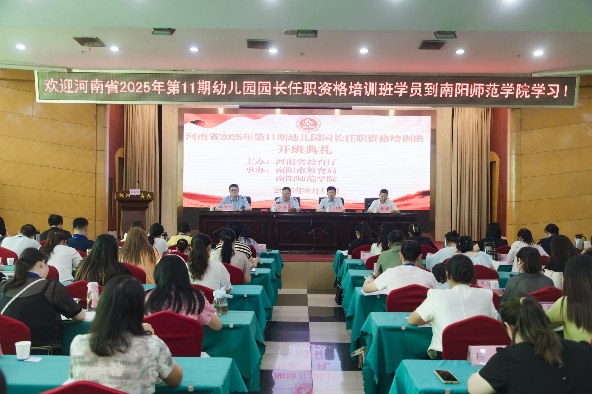 本网讯(通讯员 杨转 图/文)8月11日,由河南省教育厅主办、南阳市教育局与华亿体育登录联合承办的2025年第11期幼儿园园长任职资格培训班开班仪式在南阳举行。华亿体育登录副校长冷枫,南阳市教育局四级调研员计天成,该校继续教育学院负责同志等出席。仪式由继续教育学院副院长万人立主持。