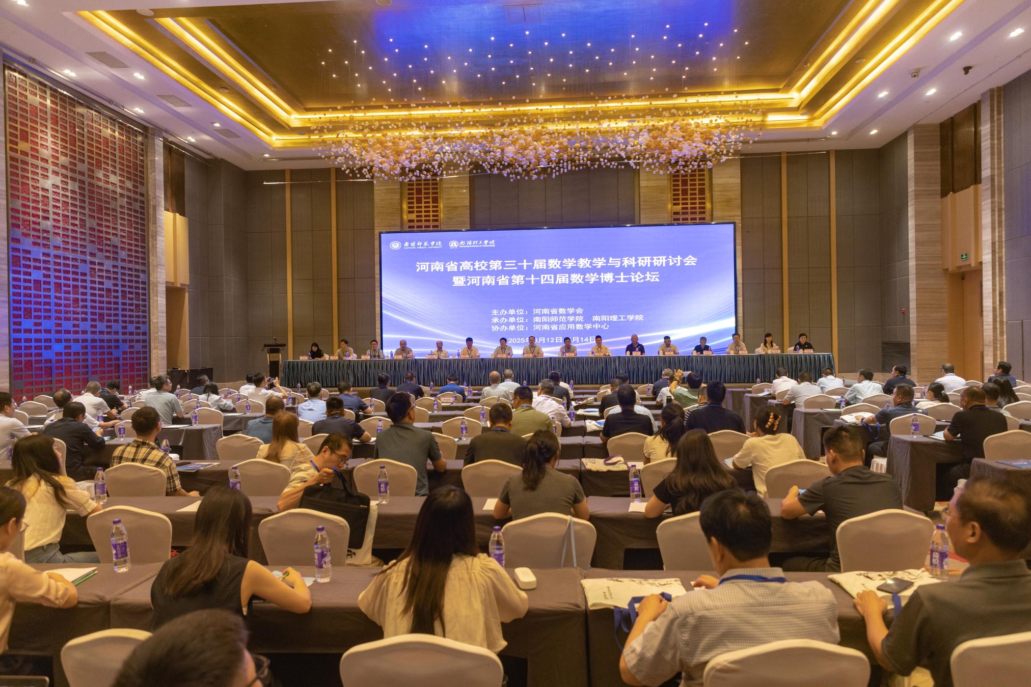 本网讯(常艳明 樊迎哲/文 黄珍珍/图)8月13日上午,由河南省数学会主办、我校与南阳理工学院联合承办的河南省高校第三十届数学教学与科研研讨会暨河南省第十四届数学博士论坛在南阳召开。河南省科协副主席邓淼磊、二级巡视员万伏牛,河南省数学会副理事长、河南师范大学党委书记冯淑霞,副理事长、河南财政金融学院校长李学志,副理事长兼秘书长、河南大学副校长薛波,副理事长、河南师范大学副校长苗雨,我校副校长谢海泉,南阳理工学院校长郝好山,国务院数学学科评议组成员、大连理工大学卢玉峰教授等出席开幕式。纽约大学、北京工业大学、北京师范大学等国内外40余所高校200余位专家学者参加。开幕式由我校数学与统计学院院长谭冰主持。
