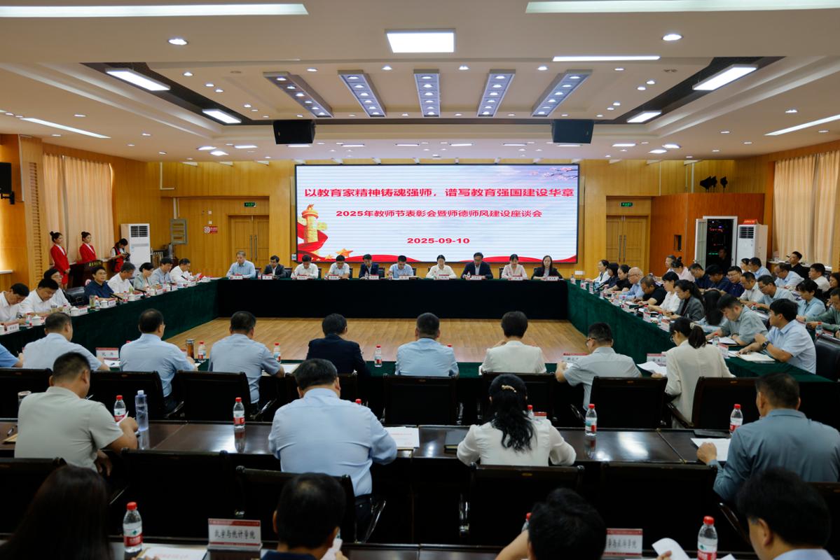 本网讯(张保林/文 孟翔/图)9月10日上午,我校2025年教师节表彰会暨师德师风座谈会在科技大楼三楼会议室召开。校领导张宝锋、孟静雅、刘红林、刘守勇、熊新忠、王岩、谢海泉、刘金江、冷枫、姚伦广出席会议。2025年度最美教师、优秀教师、优秀教育工作者、从教30年教师代表和二级单位党政主要负责人参加会议。会议由副校长王岩主持,分两阶段进行。
