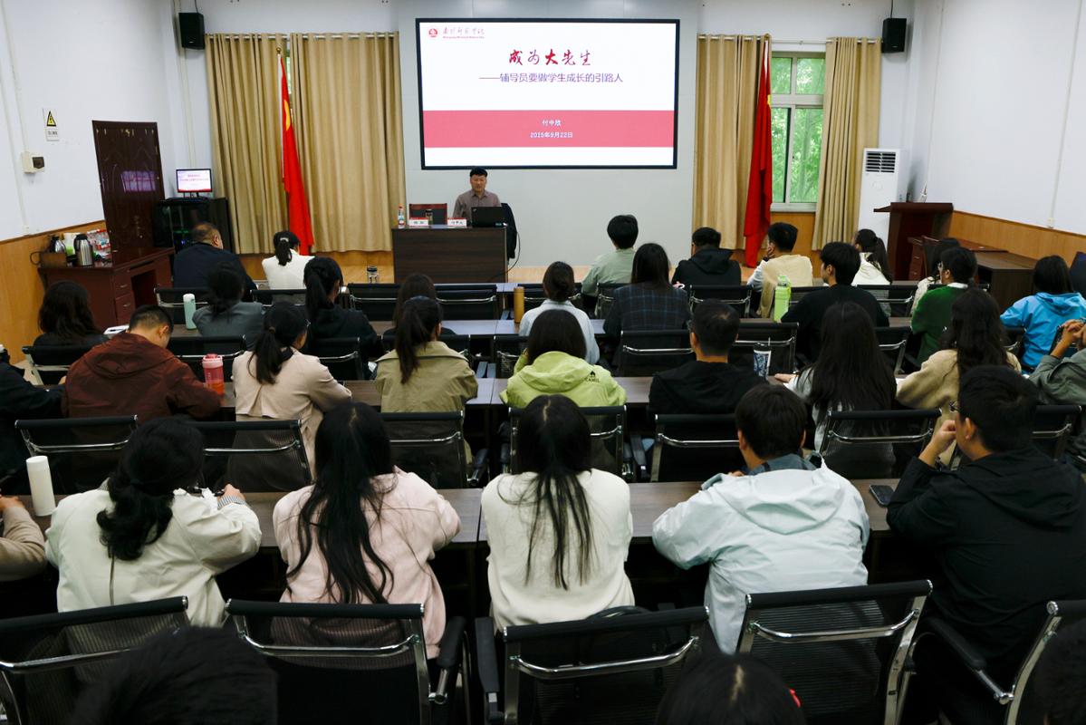 开班仪式结束后,学生处处长付中欣为全体新入职辅导员作了题为《成为大先生——辅导员要做学生成长的引路人》的专题培训。
