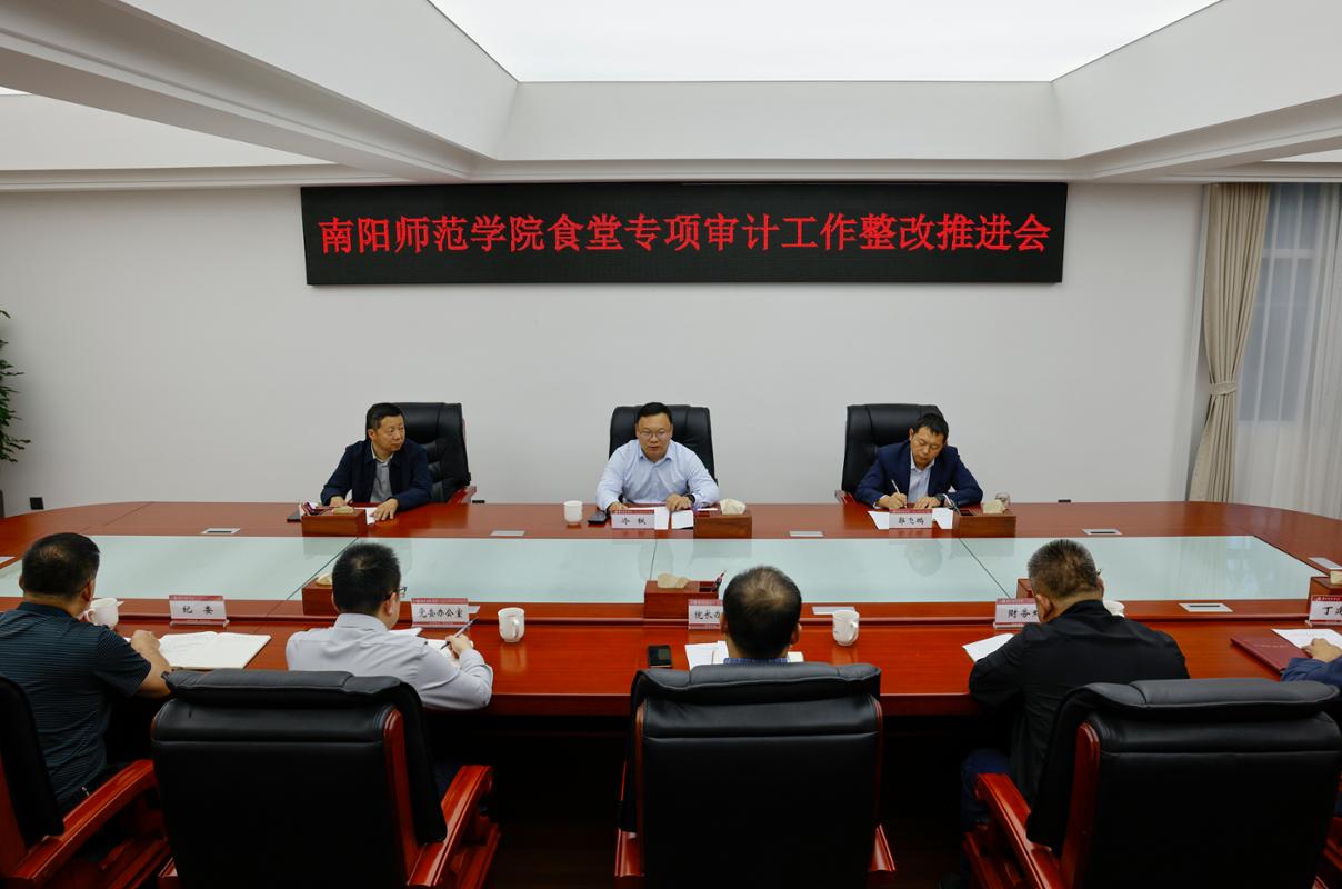 本网讯(褚卫立/文 阮子涵/图)9 月 28 日下午,我校食堂专项审计工作整改推进会在办公大楼二楼东会议室召开。副校长冷枫出席会议,党委办公室、院长办公室、纪委、国有资产管理处、财务处、后勤管理与服务中心等部门负责同志参加会议。会议由后勤管理与服务中心党委书记支贵生主持。