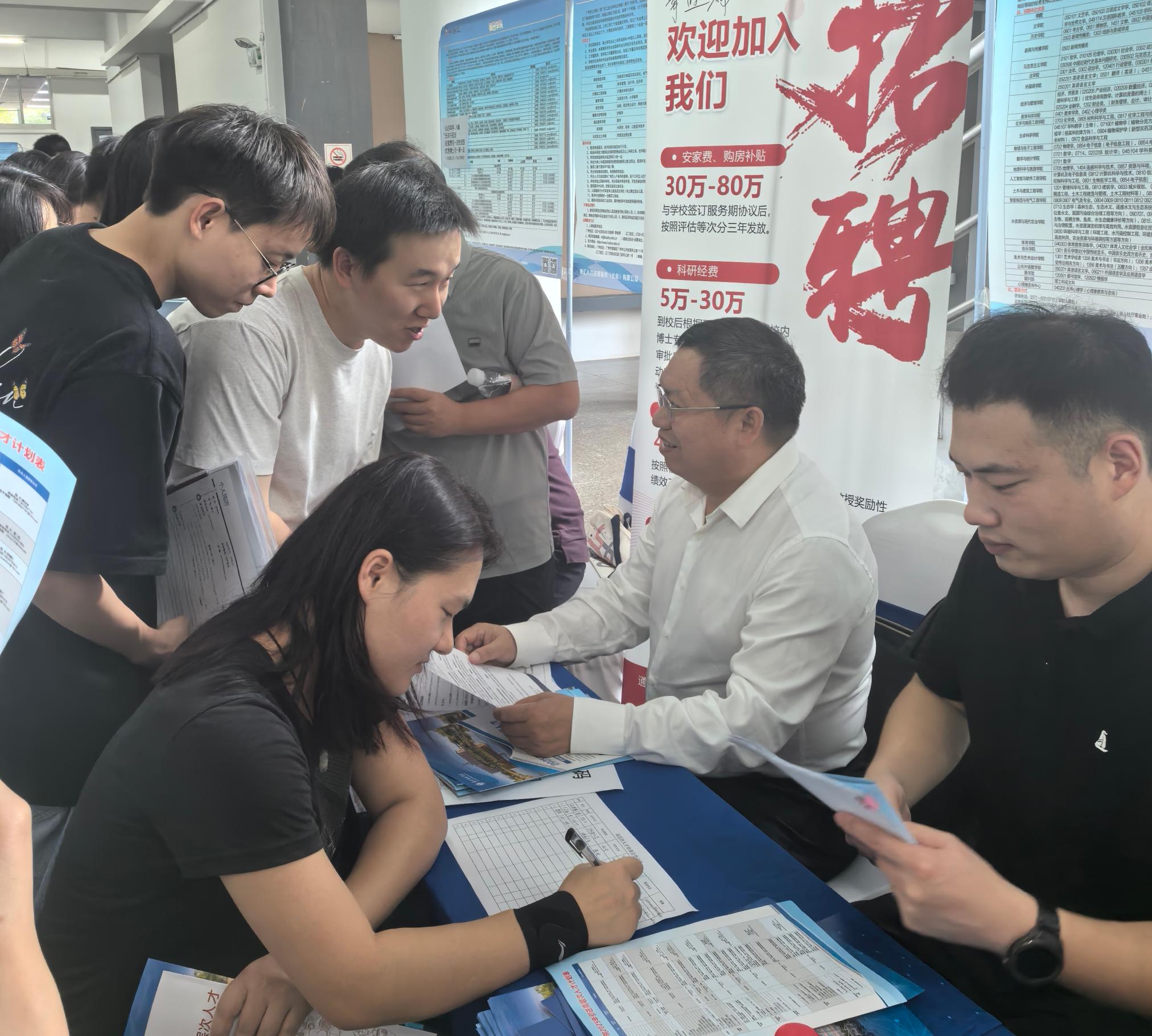 招聘会现场,姚伦广与应聘博士进行了亲切交流,详细了解他们的研究方向、学术背景及职业发展规划,并介绍了学校的高层次人才引进政策。(编审 张君明)