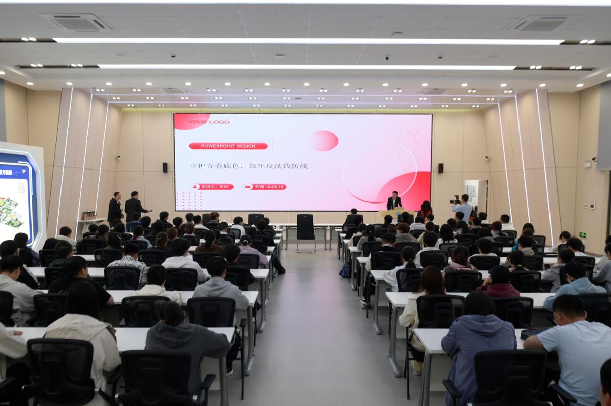 冷枫作动员讲话。他指出,要将防诈骗、反洗钱教育从“开学提醒”升级为“日常习惯”,并向师生发出三点倡议。一是持续学习安全知识,将防范教育融入教学与管理;二是坚定践行风险防范,牢记“四不原则”、守住法律底线;三是积极传播安全理念,主动分享知识、及时报告可疑行为。