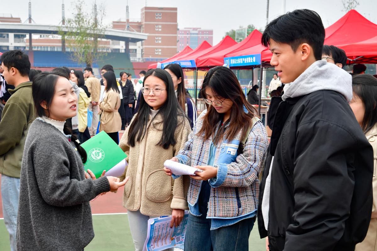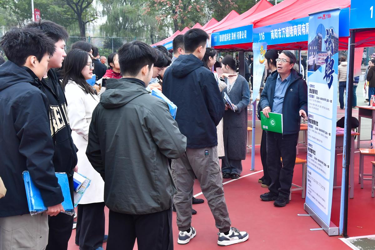本网讯(闫沛喆/文 黄珍珍 阮子涵/图)10月24日,河南省毕业生就业市场南阳分市场暨华亿体育登录2026届毕业生秋季大型双选会在中区篮球场举办。本次双选会由河南省教育厅主办,河南省大中专学生就业服务中心、共青团南阳市委、南阳市人才交流中心、南阳市人才服务中心与我校联合承办。副校长冷枫,共青团南阳市委书记李冬冬到现场调研指导,各承办单位有关同志和我校各二级学院主要负责同志、就业专干在双选会现场深入对接用人单位需求,精准推介我校毕业生,为供需双方搭建桥梁。