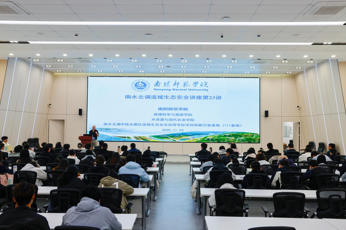 本网讯(赵莉/文 张家好/图)11月3日上午,流域生态水文系列学术报告会在我校科技大楼一楼学术报告厅举办。本次活动由地理科学与旅游学院、水资源与现代农业学院及南水北调中线水源区流域生态安全高等学校学科创新引智基地联合主办。副校长姚伦广教授出席并致辞。美国工程院院士、加州大学洛杉矶分校Dennis Patrick Lettenmaier教授、中国科学院大气物理研究所国家杰出青年科学基金获得者王爱慧研究员在会上作报告。学校相关学院师生代表200余人参加报告会。