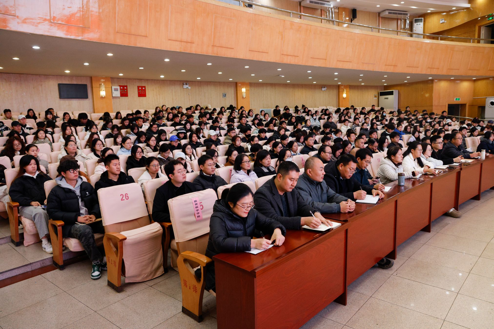 本网讯(李丹阳/文 张家好/图)为深入学习贯彻党的二十届四中全会精神,严格落实党章党规制度要求,进一步提高党员发展对象的党性修养,做好党员发展对象集中培训工作,11月17日晚,我校在音乐厅举行2025年秋期党员发展对象培训班开班仪式。校党委副书记孟静雅出席并作动员讲话,党委组织部全体人员、二级学院党委副书记以及438名党员发展对象参加开班仪式。开班仪式由党委组织部部长、党校副校长王春阳主持。