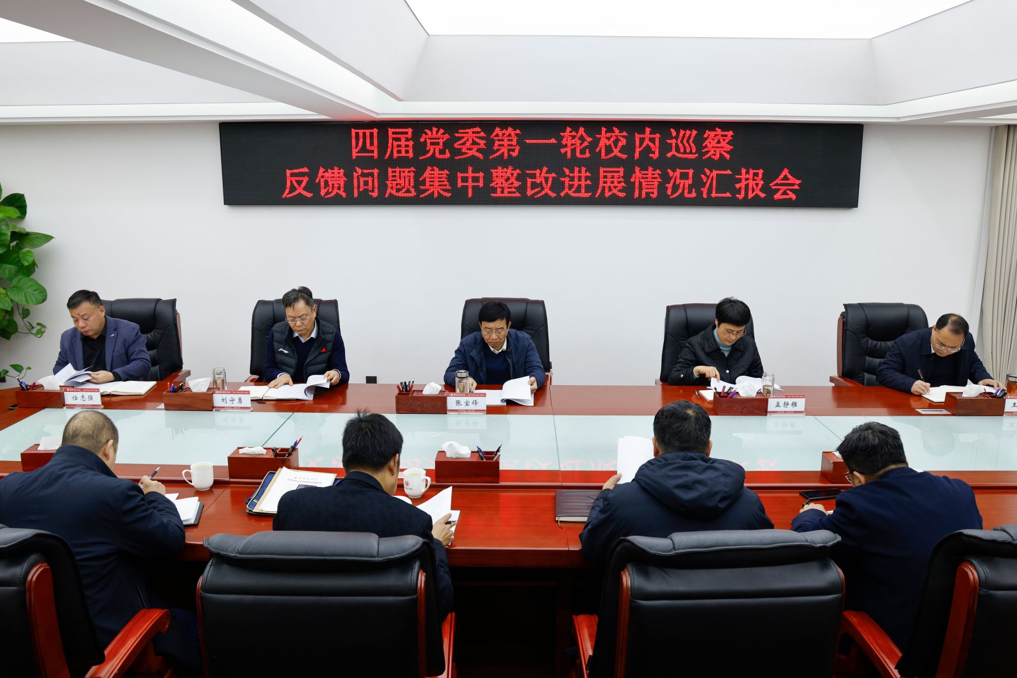 党委巡察办主任任志强汇报了四届党委第一轮巡察反馈问题集中整改进展的整体情况;地理科学与旅游学院、后勤管理与服务中心(社区管理办公室)、外国语学院、新闻与传播学院、公共外语教学部、继续教育学院六个党组织书记结合各单位实际,分别汇报了巡察反馈问题集中整改的具体举措、阶段性成效及下一步整改计划。