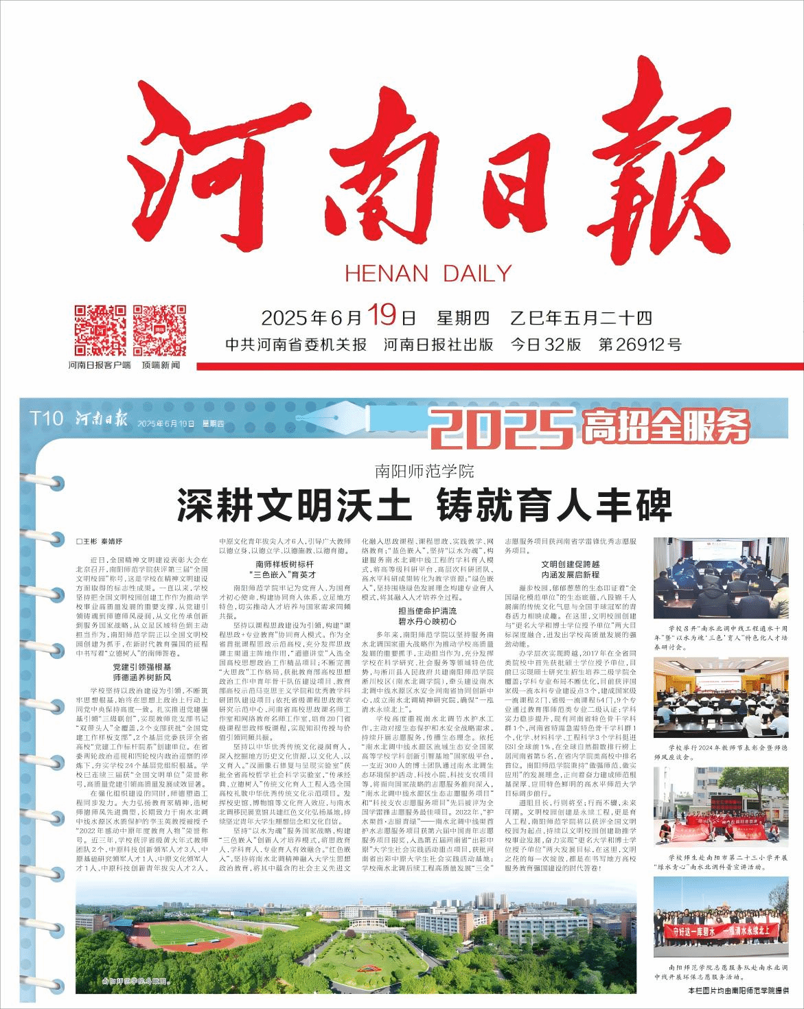2025年6月19日,《河南日报》T10版刊发文章《华亿体育登录:深耕文明沃土 铸就育人丰碑》,全文如下:
